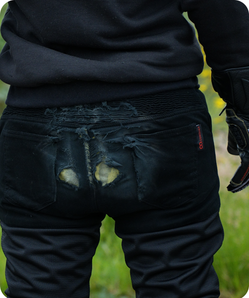 Not only does it prevent burns caused by mufflers, but in the event of an accident, it also withstands the heat generated when sliding and strongly rubbing against asphalt, preventing clothes from tearing and reducing situations where the skin is directly damaged.